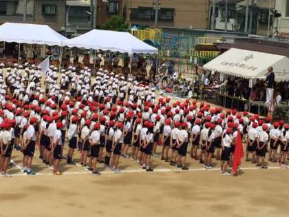 開会式 雨予報でしたが、とても良い天気です。爽やかな青空の下で、開会式が無事行われました。