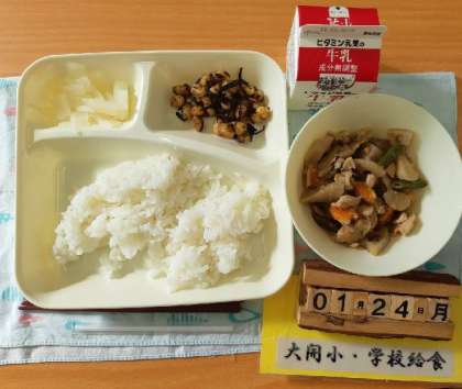 筑前煮、ひじき豆、だいこんのゆず風味、ご飯、牛乳です。