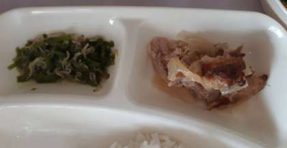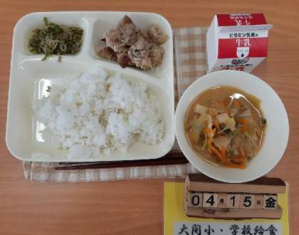 豚肉のしょうが焼き、みそ汁、じゃこピーマン、ご飯、牛乳です。