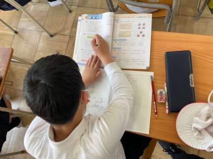 算数で、大きな数の学習をしました。大きい数は、4けたごとに区切って読むことで読み間違いを防ぐことがてきることを再確認しました。みんな真剣に学習に取り組みました。