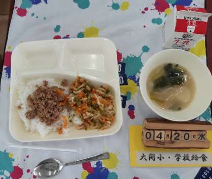 今日の給食のビビンバは、ひき肉、きゅうり、にんじん、切干しだいこんを具材として使ったビビンバでした。