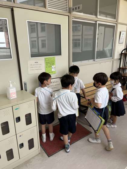 一年生と二年生で学校探検をしました。二年生はこの日のために、下見をしたり、説明する練習をしたりして、一年生を案内できるようにしていました。