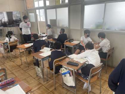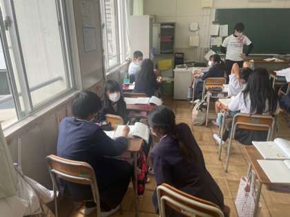 国語科では、「防災ポスターを作ろう」の学習をしました。読み手の興味をひくような表現の効果を考えて書き表し方を工夫するために、友だちとどんな方法があるか話し合いながら、自分はどう書くか決めていました。