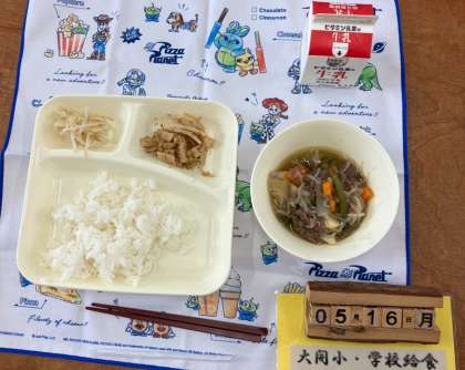 肉じゃが、もやしのゆずの香あえ、ごまかかいため、ご飯、牛乳です。