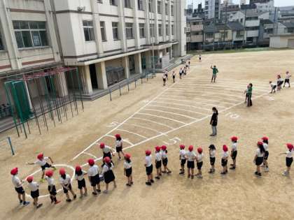 スポーツテストのソフトボール投げをしました。少しでも遠くまで投げられるように、角度を意識して投げました。