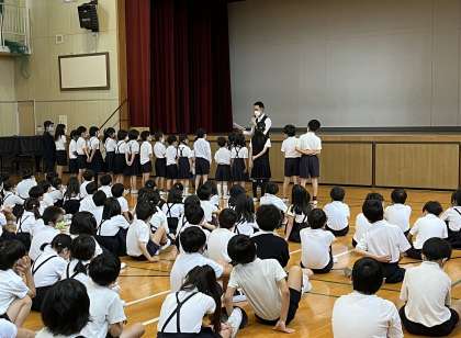 本校では、読書活動の充実に力を入れています。今日の児童朝会では、本を100冊以上読んだ児童と、一万ページ以上読んだ児童に読書プラチナ賞が手渡され、大きな拍手をもらいました。