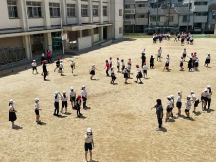 子どもたちの体力向上や運動する習慣づくりの一環として、長縄週間を実施しています。クラスやペア学年で協力しながら長縄をすることで、運動の楽しさを感じてほしいと思っています。