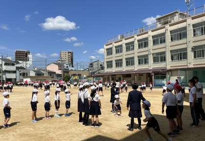 今週は体力向上週間で、長縄に取り組んでいます。1.2.3年生が跳ぶ時には、ペア学年の4.5.6年生が縄を回したり、声をかけてタイミングを伝えたりしています。一年生の児童が「はじめてとべた。」とうれしそうに呟いていました。