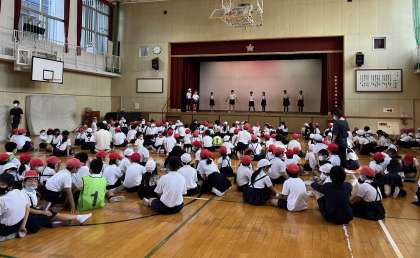 今日の児童集会では、スピーカーゲームをしました。5人が同時に話し、何と言っているかを当てるゲームです。難しい分、当たった時の喜びは大きかったです。