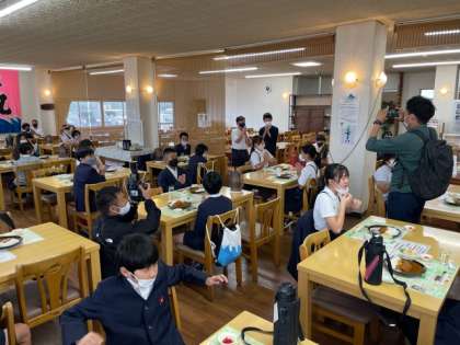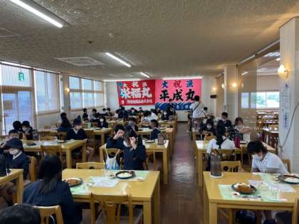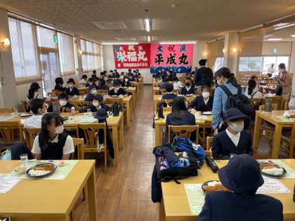 4人テーブルに2人ずつ座って、ゆったり昼食です。