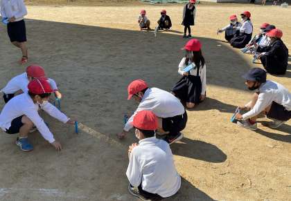 た。鏡で跳ね返した光はどのように進むのかを考えて、友だち同士で受け止めたり、文字を作ったりしました。