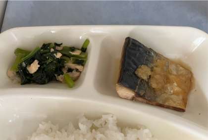 さばのみぞれかけ、すまし汁、こまつなの煮びたし、ご飯、牛乳です。