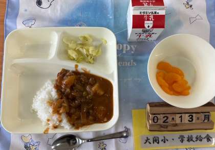 ハヤシライス、キャベツのバジル風味サラダ、みかん(缶)、牛乳です。