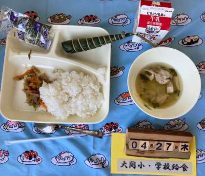 きんぴらちらし、すまし汁、ちまき、ご飯(減量)です。