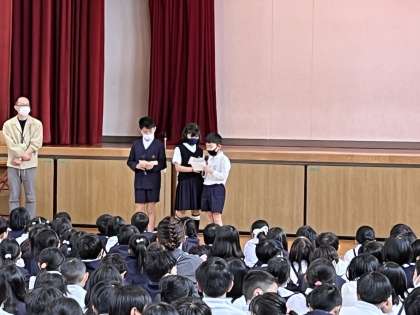 今日は大阪市で、いじめ(いのち)について考える日になっています。児童朝会で、校長先生からお話があり、ひとりひとり感じ方が違うことを分かった上で、どの人も大切にされるように考えておくことが必要だというお話がありました。また、本校では今週を心の週間と設定しているため、児童会からも呼びかけがあり、自分たちで気をつけることを提案しました。