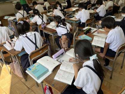 国語の学習で漢字事典の使い方を学習しました。部首索引で画数や読み方を調べることができました。