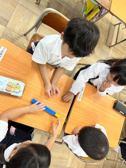 算数科でいくつといくつの学習をしました。ブロックを使って、10になる組み合わせを考えました。