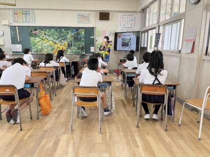 株式会社明治の方に来校していただき、チョコレートの食育をしていただきました。