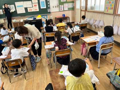 初めての絵の具を使った授業です。授業の前から、絵の具での色塗りを楽しみにしている児童がたくさんいました。