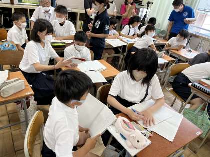 6年1組で国語科の研究授業を行いました。叙述をもとに、登場人物の心情を考えていました。