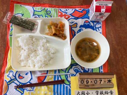 酢豚、中華味噌スープ、焼きのり、ご飯、牛乳です。