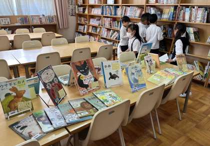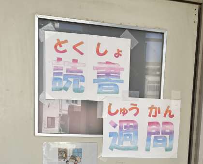 今日から、読書週間がはじまりました。図書室がいつもと違う飾り付けになっていて、クイズあり、おすすめの本ありとわくわくするしかけがあります。たくさんの子どもたちが図書室を訪れていました。