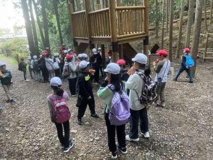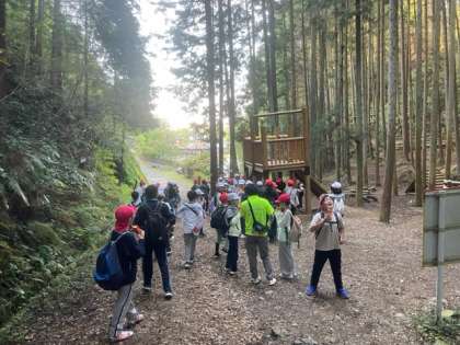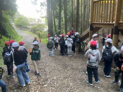 ハイキング後に、ジュースタイムです。疲れた後のジュースを飲んで、頑張ってよかった、と話している子どももいました。