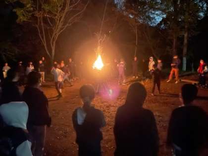子どもたちは、優しさ・勇気・健康・友情を願った火を囲み、立派な態度で、みんなで協力する喜びを感じながらのキャンプファイヤーを楽しみました。