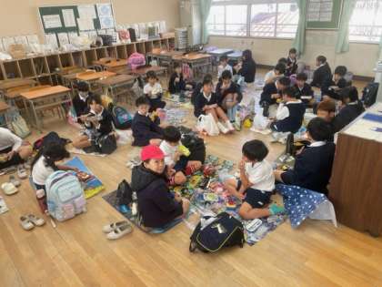 全校遠足が中止になったかわりに、校内オリエンテーリングを行い、その後、にこにこ班でお弁当を食べました。普段とちがう学校でのお弁当に、子どもたちは楽しく美味しそうに食べていました。