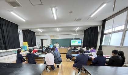 サントリーの方が来られて、水と私たちの生活の関係について教えていただきました。