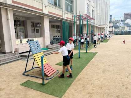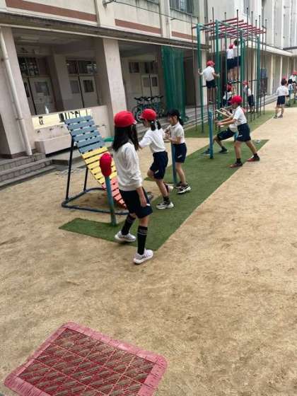逆上がりを教えあう姿がみられます。