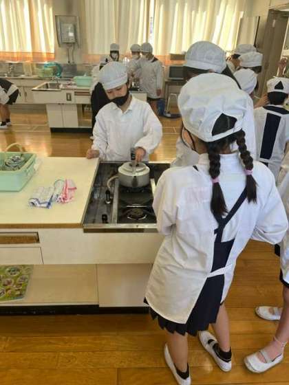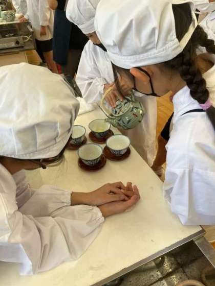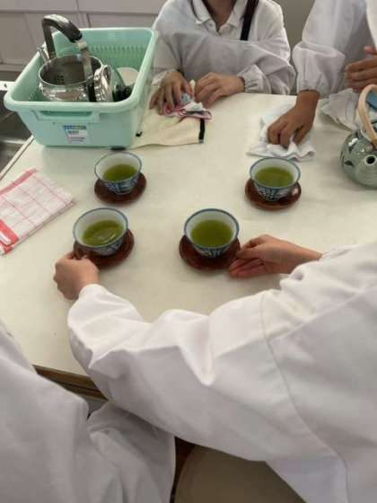 家庭科で調理実習を行いました。第1回目はお茶の入れ方です。