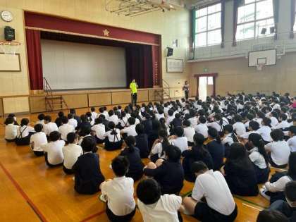 生活指導では休み時間の過ごし方についての話がありました。暑い日が続くので、外で遊ぶ時は帽子をかぶる・水分補給をするなど、熱中症にならないための予防をしようと呼びかけました。