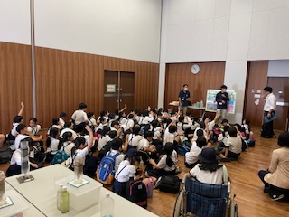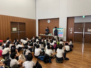 水道からお水が出てくるまでの仕組みはどうなっているのだろう。そのような疑問を解決するための社会見学です。みんな、真剣な顔で話を聞いています。