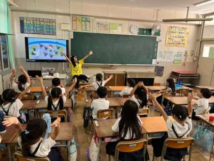 モジュールタイムで英語の歌を歌いました。 楽しくジェスチャーをしている様子も見られました。