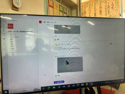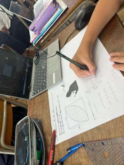 算数で円の面積の学習をしました。今までに習ったことをいかして、チャットでヒントを出し合って友達と学習したり、個別で学習したりと個別最適で協働的な学びを取り入れた授業でした。