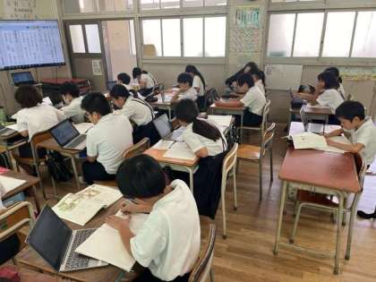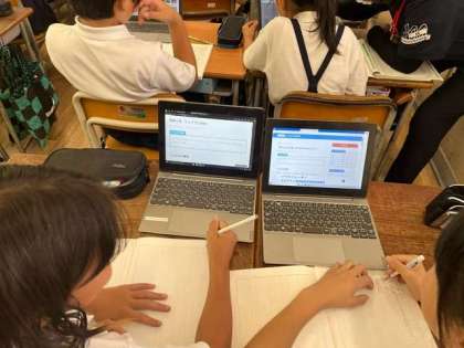 国語科で、ことわざについて学習しています。パソコンを使って調べ学習をしている様子です。