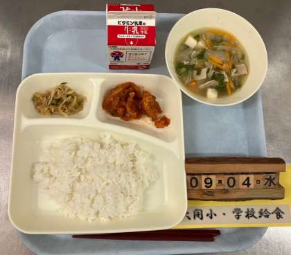 ヤンニョムチキン、とうふのスープ、切干しだいこんのナムルです。