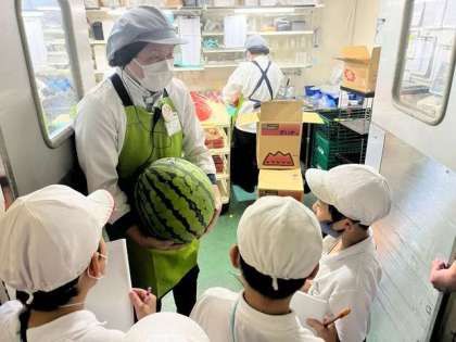 ライフの冷凍庫の寒さやすごく大きいスイカを見てビックリしている様子です。