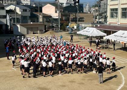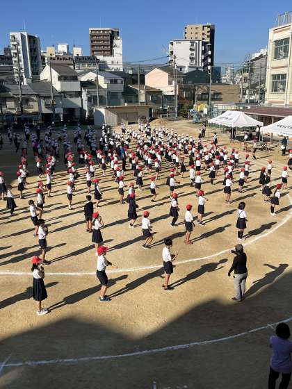 朝の時間を使って、運動会の全体練習を行いました。少しずつ準備を進めています。