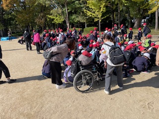 今回は、車椅子の児童が多く、PTAの皆様にもご協力をいただきました。お忙しい中にも関わらず、子どもたちのために本当にありがとうございます。