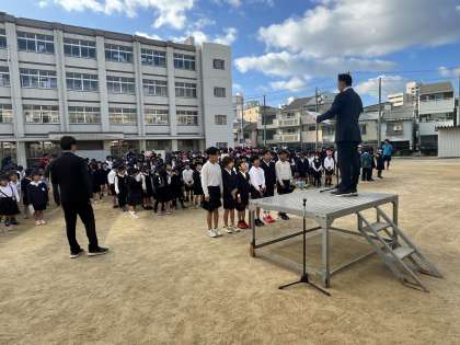 児童朝会で、スポーツの表彰も行いました。ソフトボール福島連合チームが大阪府の大会で優勝し、全国大会に出場するそうです。選手のみなさんがんばってください。