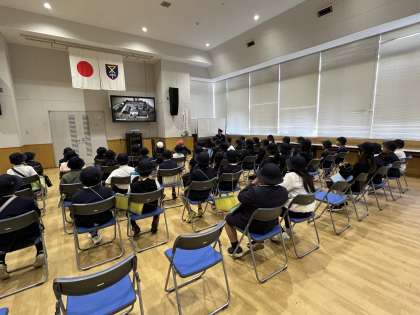 DVDを観ながら消防士さんの働きを学びました。その後の質問タイムにはたくさんの質問が出ました。訓練や仕事のことを教えていただき、驚くこともたくさんありました。