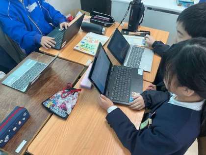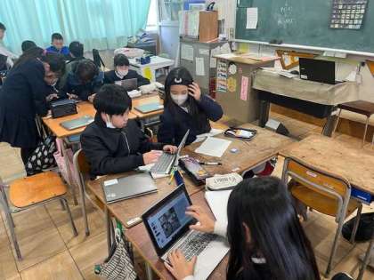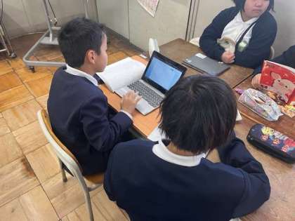 パソコンでアンケートを作成し集計しています。集計したアンケートの結果をもとに報告会を行う予定です。