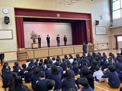 今年度新しく大開小学校へ転任された先生方の着任式を行いました。 子どもたちは拍手でお迎えしました。