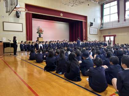 昨日、小学校へ入学した一年生との対面式を行いました。一年生もしっかりと「よろしくお願いします」のあいさつができました。