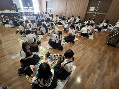 勉強が終わり、持たせていただいたお弁当を美味しくいただいています。朝早くから、ありがとうございます。