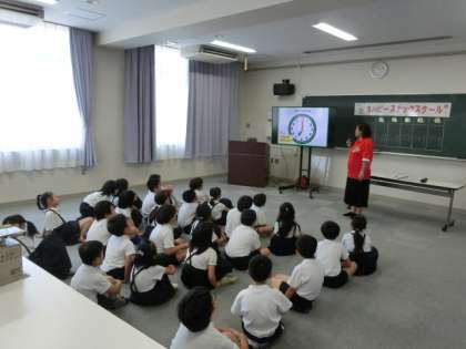 3・4時間目に多目的室でカルビーの方に来ていただき、ポテトチップスのことについてお話をしていただきました。一袋のポテチ量や、1日どれぐらい食べていいのかなど健康面についてもお話していただきました。