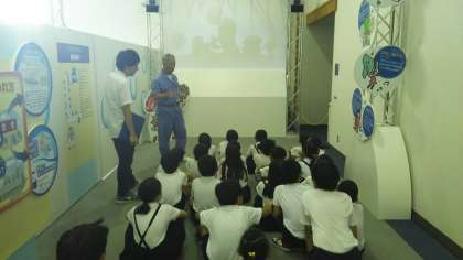 まず始めに、今年から新しく導入されたプロジェクションマッピング映像を見ながら、大阪市の水がどのように作られているかを学習しました。