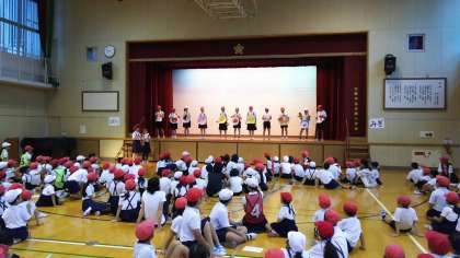 2学期初めての児童集会がありました。今日の集会は、キャラクターのしぐさをチームで当てるという内容でした。